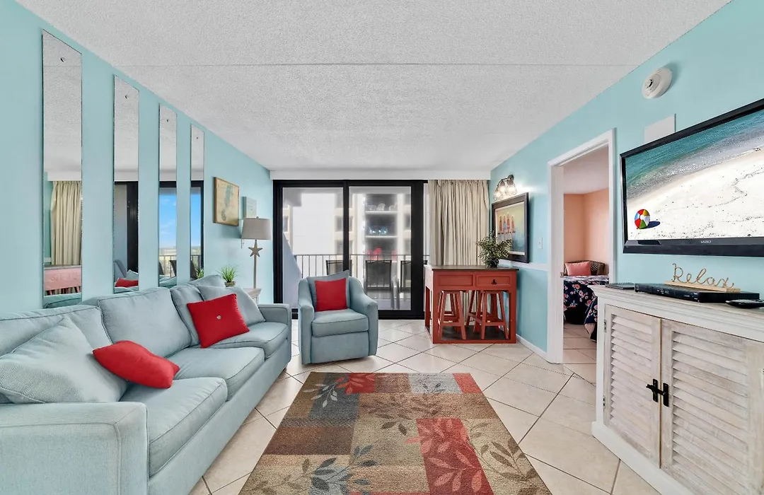 Situated 1.7 miles from the rentable multi - use Johnnie Sims Park Pavilion in Gulf Shores, the 2-bedroom villa is a few moments from The Hangout. Guests can access Gulf State Park a 10-minute drive from, while Alabama Gulf Coast Petting Zoo is about 15 minutes away by car.